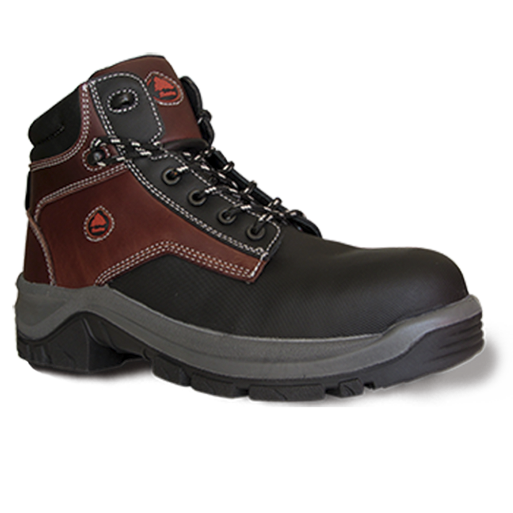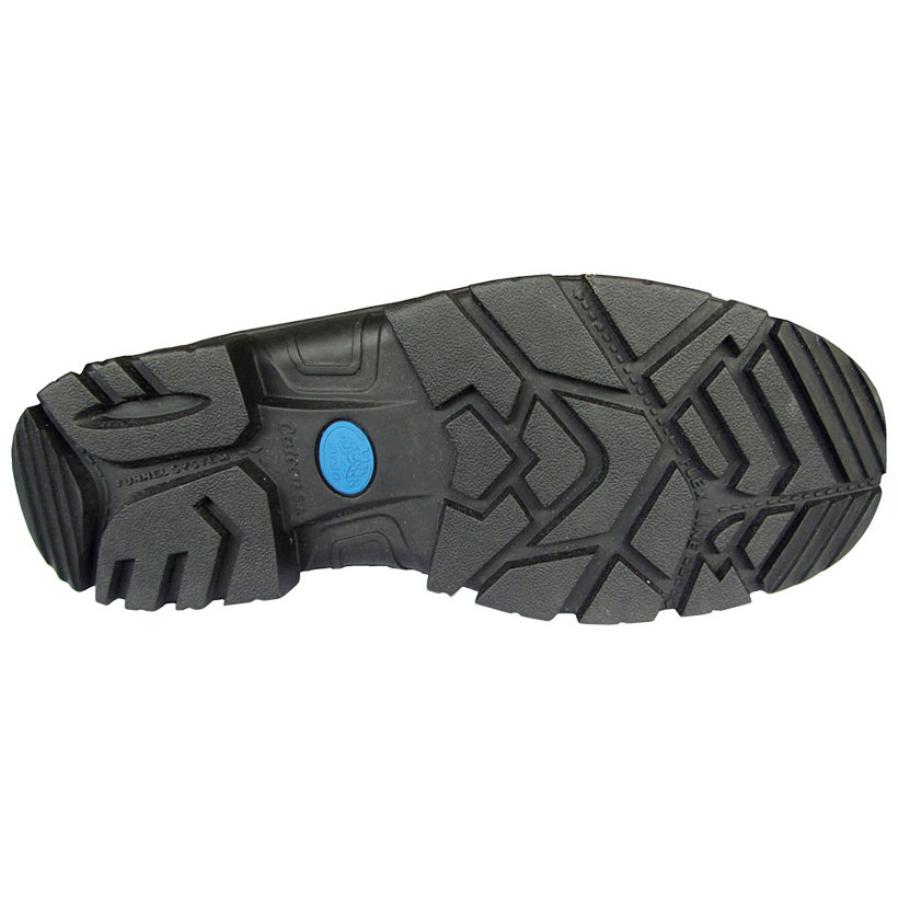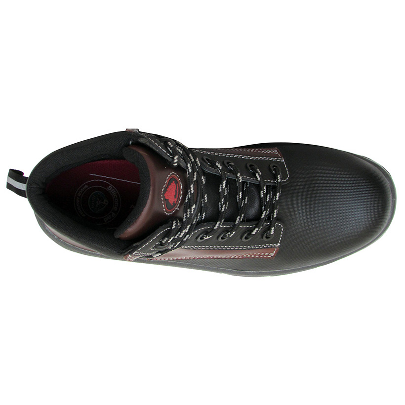 Botín de seguridad para trabajos en ambientes ácidos, fabricado en combinación de cuero con recubrimiento en elastómero de alta resistencia a solventes e hidrocarburos, planta de PU/CAUCHO de elevada resistencia a la abrasión.
