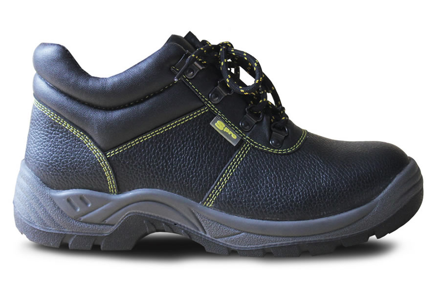 BOTÍN DE SEGURIDAD CON SUELA DE POLIURETANO DE 2,2MM DE ESPESOR. COLOR NEGRO CON PUNTERA Y PLANTILLA DE ACERO. PLANTA AISLANTE COLOR NEGRO LENGÜETA Y TOBILLERA ACOLCHADA, CON 4 PASACINTAS, PASADORES NEGRO AMARILLO. TALÓN CON ABSORCIÓN DE ENERGÍA. SUELA RESISTENTE A LA PERFORACIÓN Y ALTA RESISTENCIA A LOS RESBALONES EN SUELOS INDUSTRIALES LISOS Y GRASOS. APROBACIONES: ANSI Z41-1999, NTP-300-62-022-25, NTP-241-004