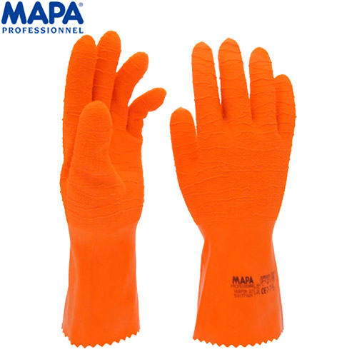 | GUANTE LATEX CORRUGADO MAPA HARPON 321 ANT/NARANJA L-14″ T-9 |