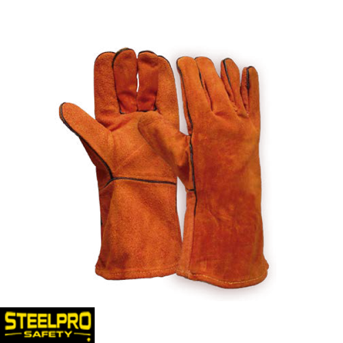 Guante confeccionado totalmente en descarne curtido al cromo color naranjo. Además cuenta con costuras protegidas casi en la totalidad de las comisuras y en su interior completamente forrado.