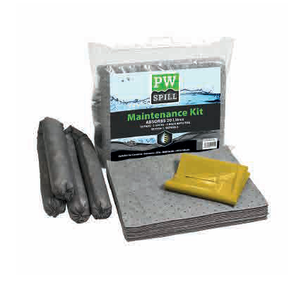 Un kit económico de respuesta a derrames que es de fácil transporte y lo suficientemente pequeño para poder ser colocado detrás del asiento de un vehículo. Las toallas de mantenimiento tienen cubiertas que las mantienen unidas incluso estando saturadas. Las mangas tienen doble puntada para una máxima retención de líquidos.