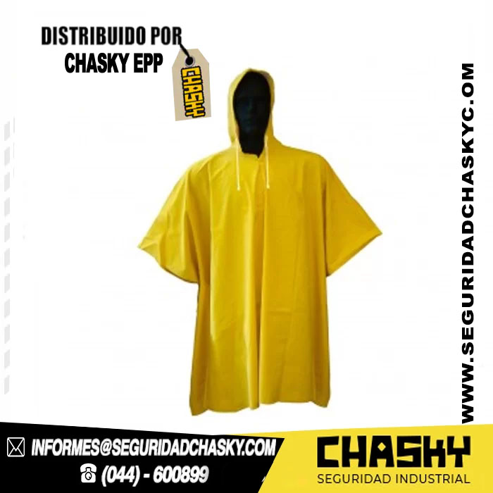 Poncho impermeable con capucha para la protección de área de la cabeza.